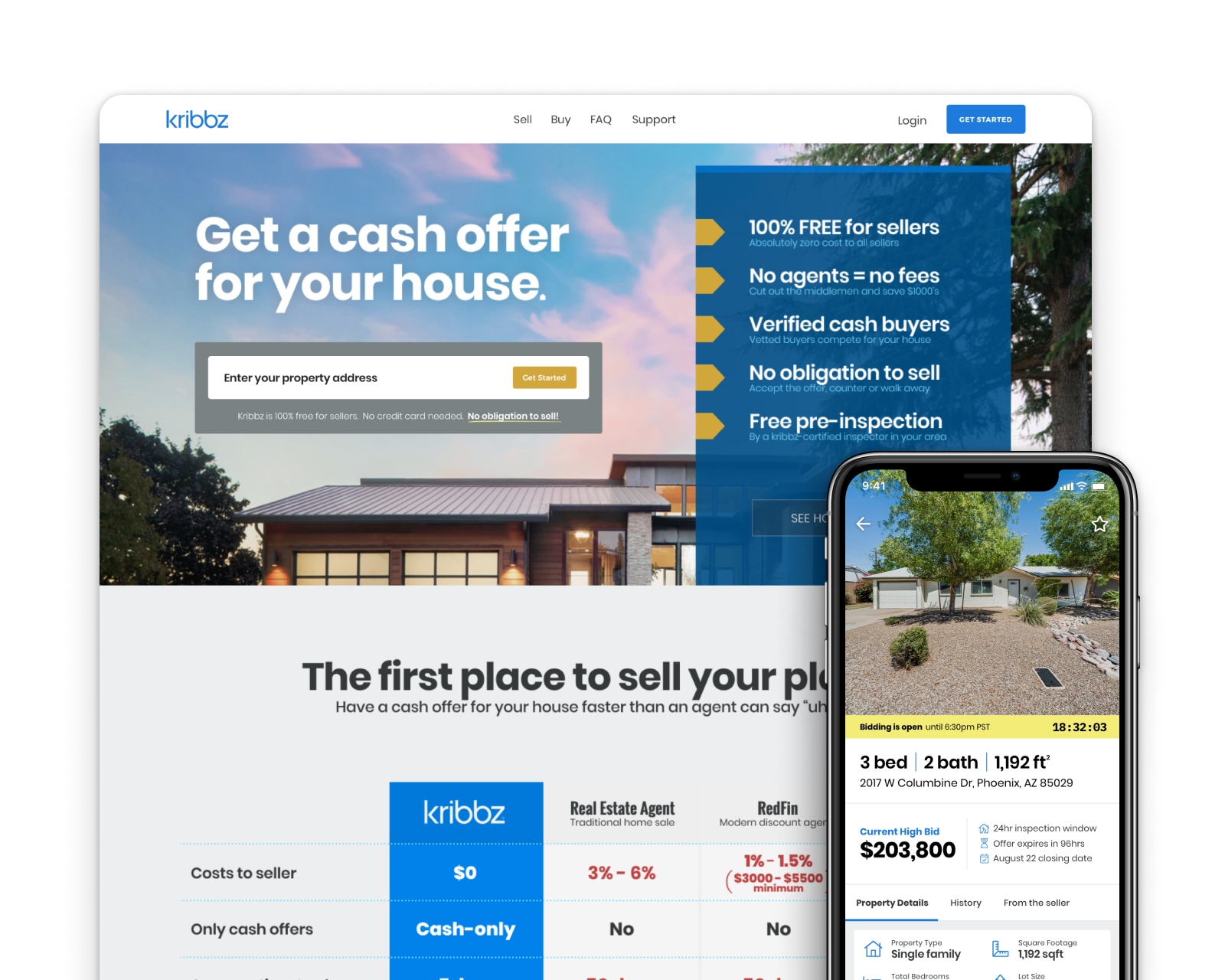 Real estate platform enabling homeowners to sell their property directly to cash buyers without an agent
